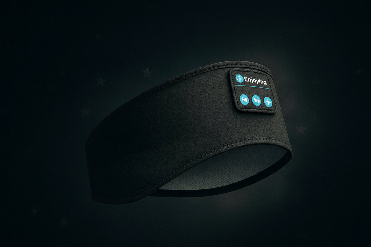 Black headband with Bluetooth control panel on a white background Eclipse SoftSleeper Gray headband with Bluetooth control panel on a white background